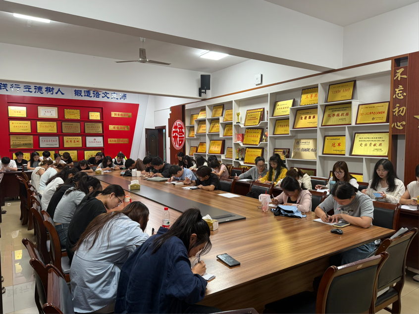 (通讯员:孙佳萌 摄影:孙佳萌 校对:秦兴钰 审核:方正)为全面、准确了解2025级学科教学(语文)学生的汉字书写水平,科学制定研究生阶段书写技能训练方案,夯实研究生书写基本功,培养核心竞争力,2025年9月18日晚7时,黄冈师范学院文学院(苏东坡书院)点墨书法社于致远楼522教室组织开展书法开学测验。全体2025级学科教学(语文)研究生新生参与。