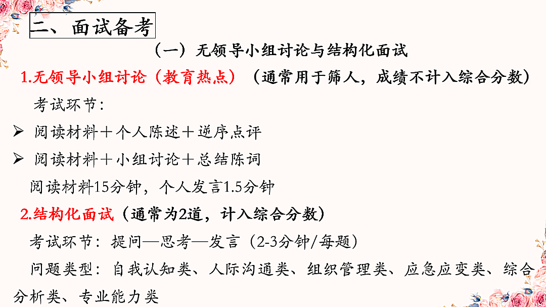 在面试备考方面,江海成同学强调了“输入”与“输出”相结合的备考模式。针对无领导小组讨论与结构化面试环节,她提出了“逻辑清晰”“内容充实”“情境代入”的答题策略;针对试讲环节,她从“教材解读”“教学设计”“仪态举止”“反复演练”四个方面提出了具体的备考建议。她强调,“常态化”的试讲演练至关重要,鼓励考生主动挑战自身局限,持续优化,实现“扬长补短”。