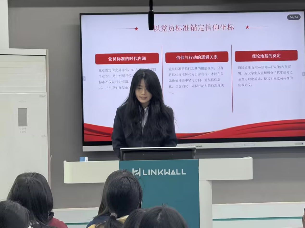 10月22日晚,李俊就《大学生入党须知及注意事项》和《中国共产党的组织、纪律和作风》两个专题进行讲解。她细致梳理大学生入党流程中的关键环节,结合实例提醒常见误区,并重点阐释了民主集中制原则与党的纪律要求,强化学员的组织观念和纪律意识。