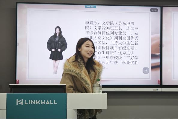 李嘉欣作为优秀创新创业代表,在大学期间不断拓展能力的边界。2024年,她主持省级大创项目“新媒体运营下的大别山东坡文旅轻资产开发路径——以黄冈市为例”顺利结项。2025年,再主持校级大创项目“红城优旅——AI工程辅助建设东坡文旅智慧谱”立项;同年,主持创业实训项目“校园文旅一体化路线开发”成功入驻学校孵化园,完成公司注册并获营业执照,吸引民间资本投资20万元。