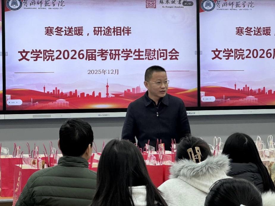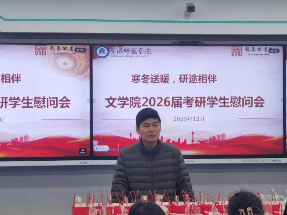 12月9日晚,文学院(苏东坡书院)在创新楼102教室举办了一场温馨而励志的考研慰问活动,为正在冲刺阶段的2026届考研学子送上学院的深切关怀与真挚祝福。文学院(苏东坡书院)党委书记刘细松、院长陈志平、全体辅导员以及考研学生参加活动。